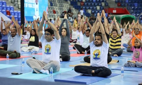 The Indian Embassy of Bahrain hosted its 10th annual Yoga Day session at Khalifa Sport City in celebration of International Yoga Day.