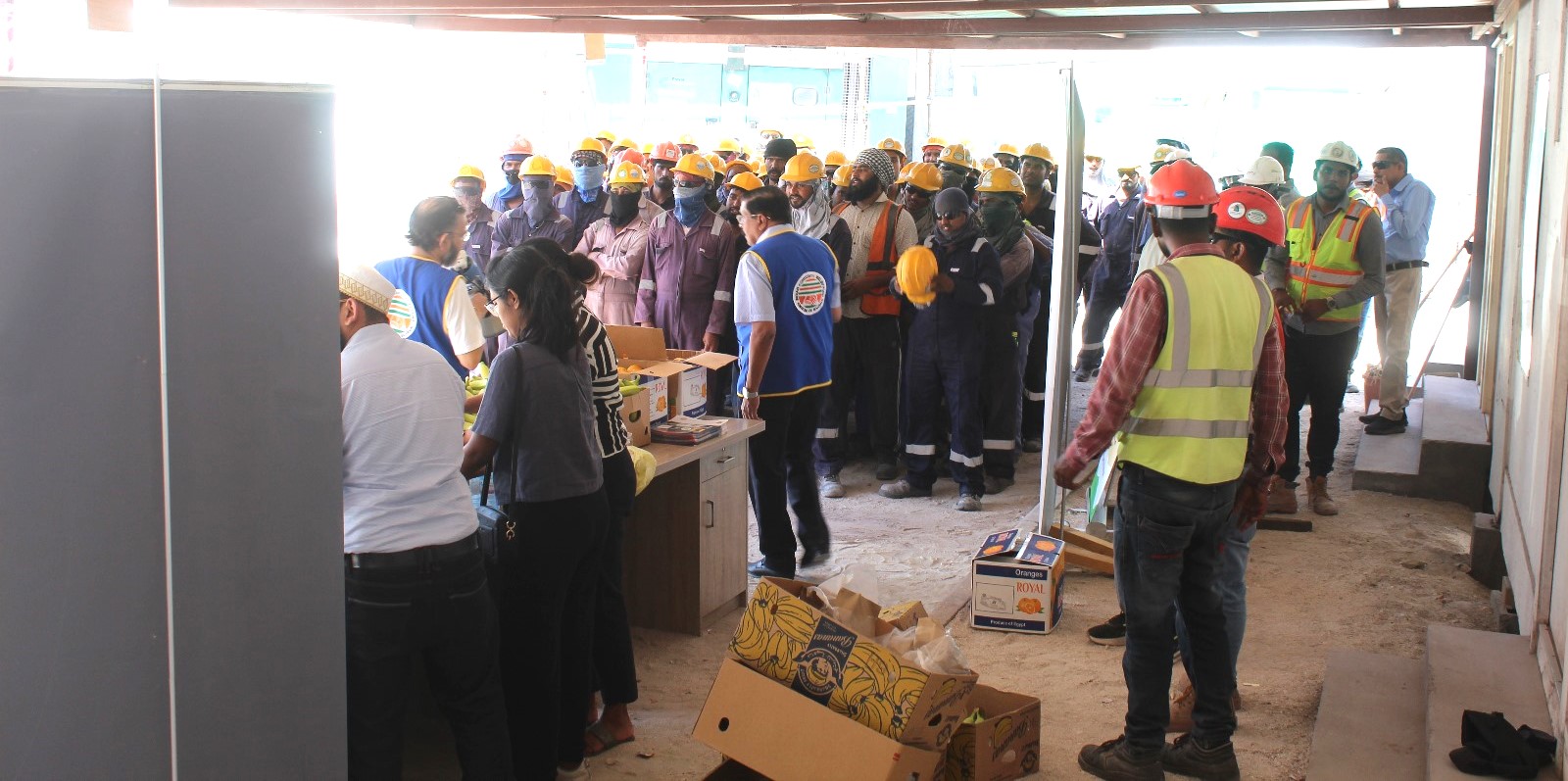 Approximately 250 workers participated, receiving water bottles, Laban, oranges and bananas. As in previous years, the Bohra community and generous volunteers have shown strong support for this project. The ICRF Thirst-Quenchers team plans to continue these weekly events at various worksites for the next 10 weeks.