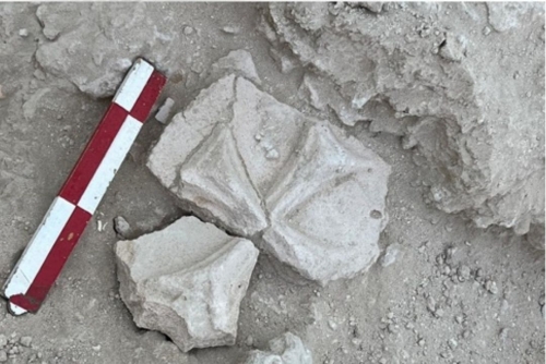 Among the most significant finds are a collection of early Christian symbols indicating the Christian identity of the inhabitants. These include three crosses made of plaster, two of which adorned the exterior of the building, and one that may have been kept as a personal memento by one of the residents. Additional finds include wall paintings carved into the plaster, including a fish symbol and part of what appears to be the "Chi Rho" symbol (a symbol composed of letters representing the word "Christ").