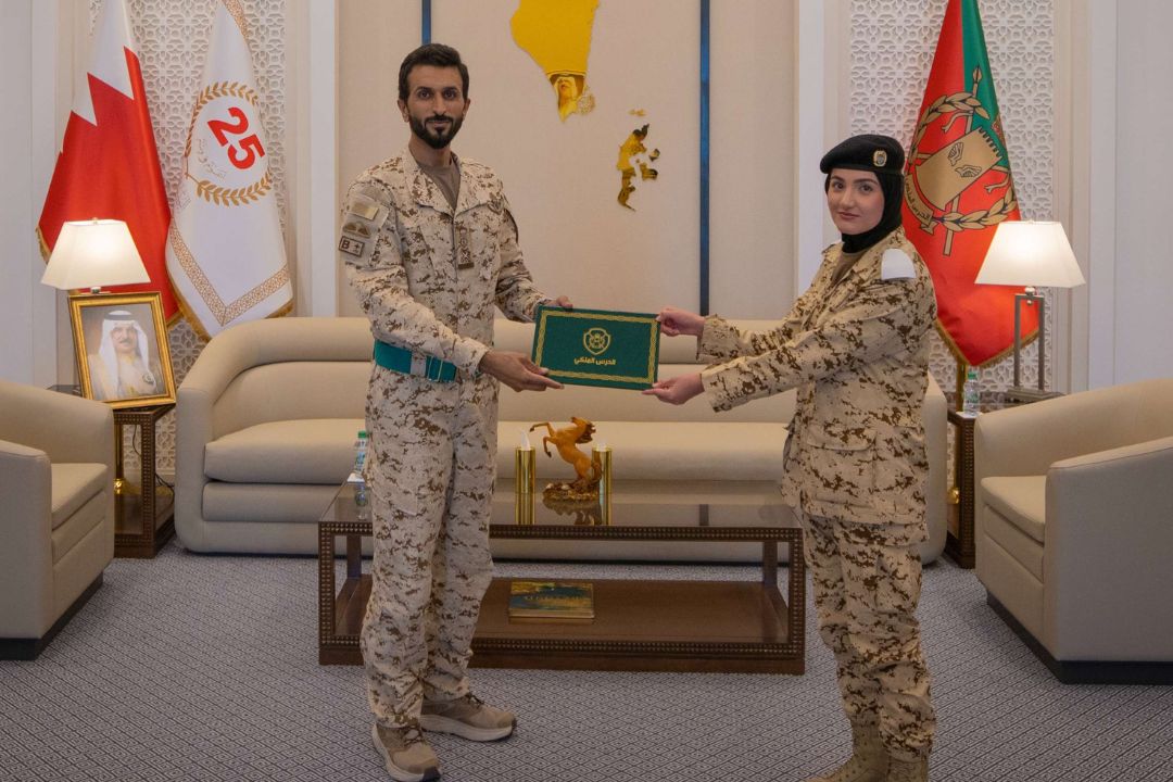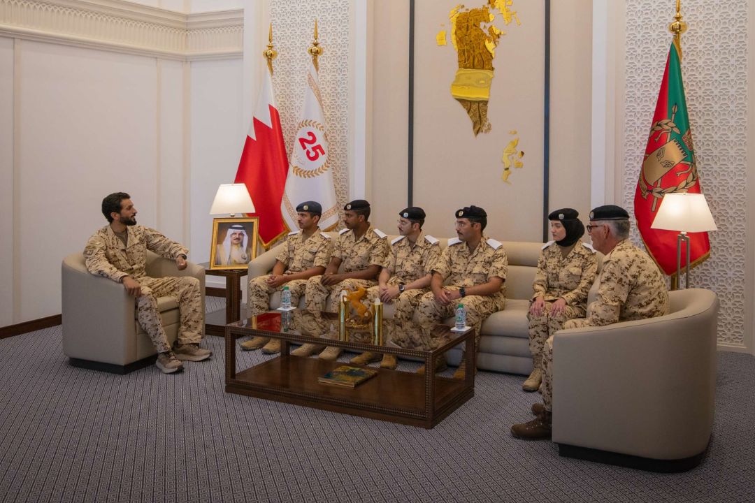 His Highness encouraged the military students to maintain their commitment and strive for excellence during their upcoming studies at Sandhurst. He underscored the importance of acquiring comprehensive knowledge in military and academic sciences to serve the Kingdom of Bahrain and the Bahrain Defense Force effectively in the future.