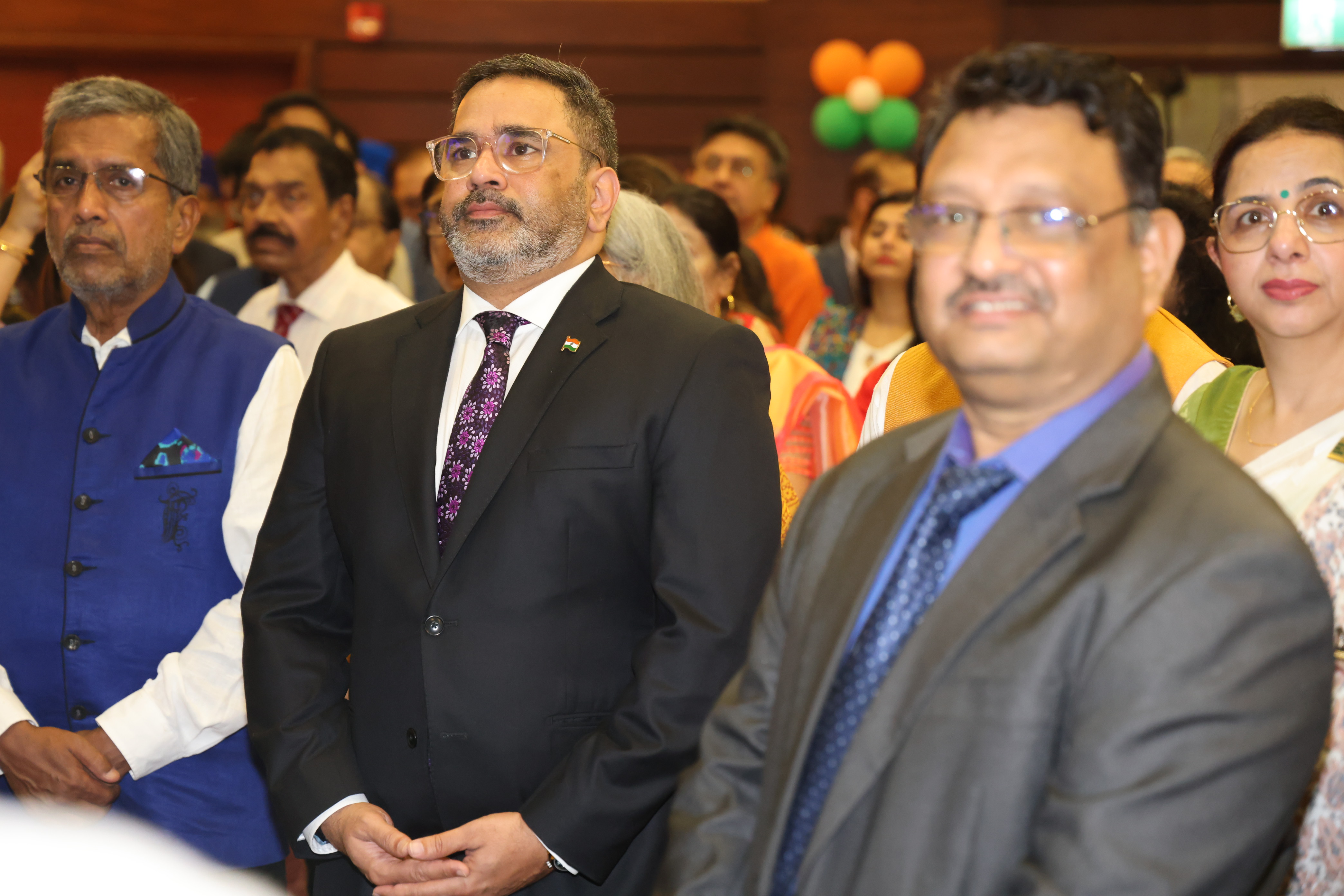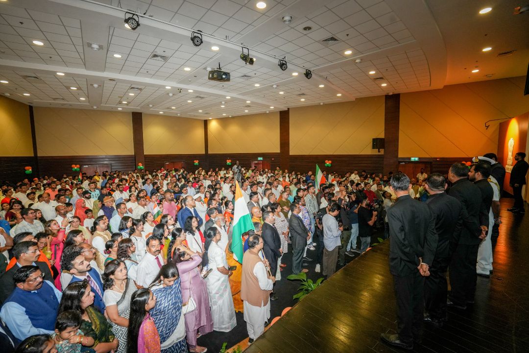 The Indian community in the Kingdom gathered yesterday at the Embassy of India, Bahrain to celebrate the 78th Independence Day of India, marked by a vibrant and patriotic atmosphere. The event commenced with a flag-hoisting ceremony that was presided by His Excellency Vinod K Jacob, the Ambassador of India to Bahrain, accompanied by Embassy officers and staff. Over 800 members of the Indian community in Bahrain participated in the flag-hoisting ceremony.