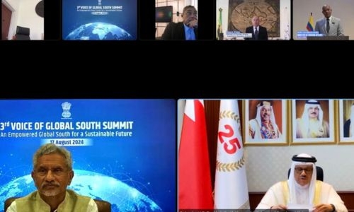 The Minister of Foreign Affairs, His Excellency Dr. Abdullatif bin Rashid Alzayani, represented the Kingdom of Bahrain in the Foreign Ministers’ session of the 3rd Voice of Global South Summit (VOGSS 3.0) held in India on 17 Aug 2024 with the overarching theme of “An Empowered Global South for a Sustainable Future”. The session was held with the theme “Global South and Global Governance” of the summit chaired by H.E. Dr. S Jaishankar, Minister of External Affairs, India.