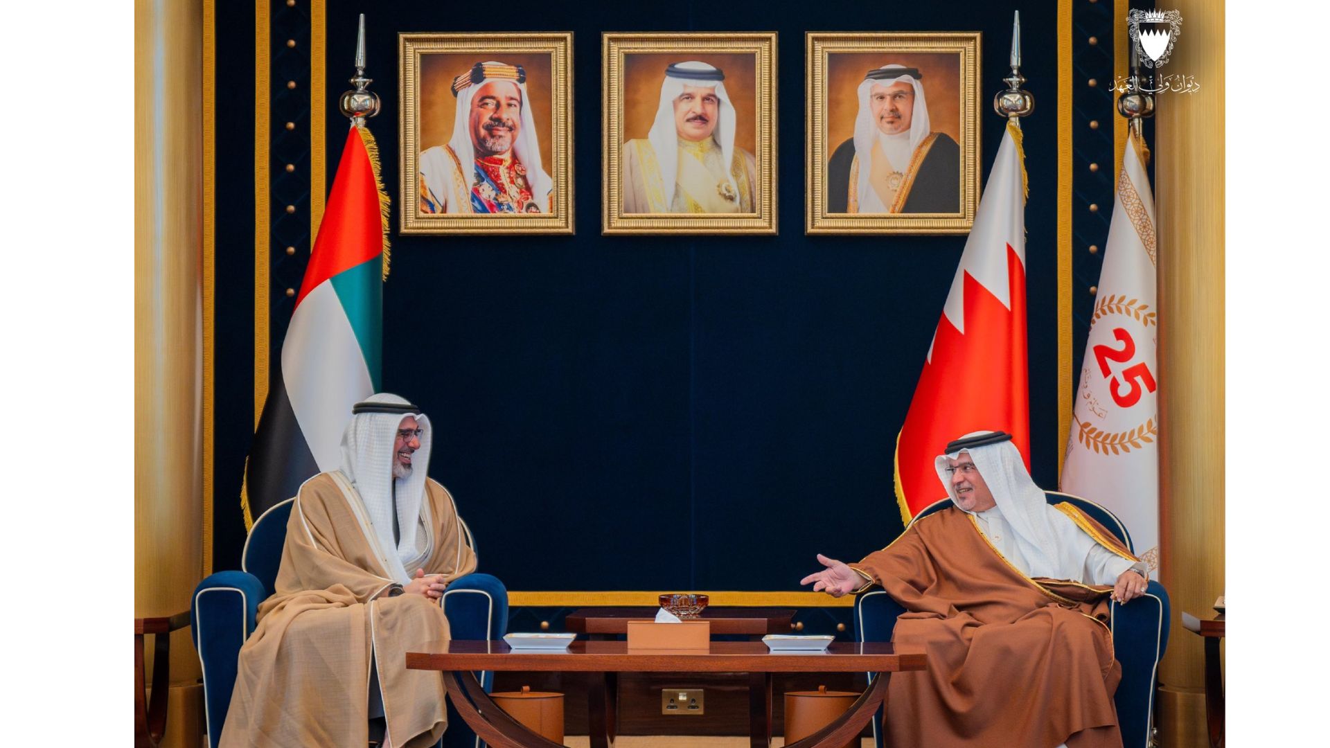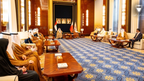 HH Sheikh Khaled bin Mohamed conveyed the greetings of the President of the UAE, His Highness Sheikh Mohamed bin Zayed Al Nahyan, and the Vice President and Prime Minister of the UAE and Ruler of Dubai, HH Sheikh Mohammed bin Rashid Al Maktoum, to His Royal Highness the Crown Prince and Prime Minister, extending their sincere wishes to the Kingdom of Bahrain and its people for continued progress and prosperity.
