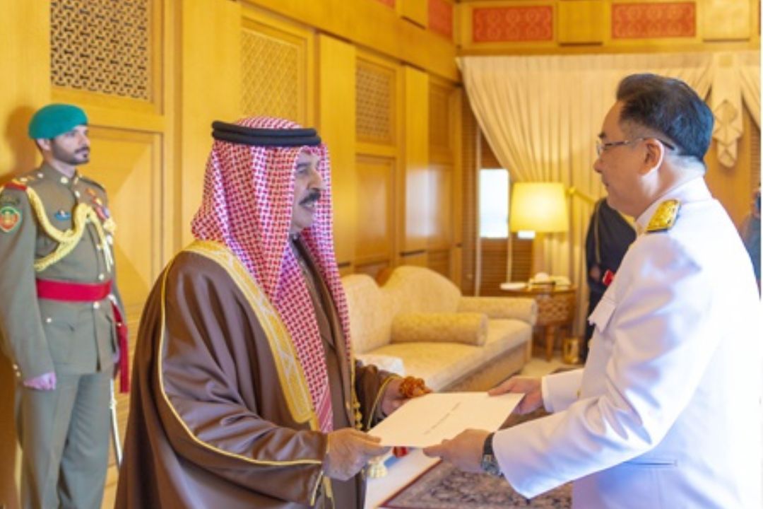 His Majesty King Hamad bin Isa Al Khalifa received the credentials of five newly appointed ambassadors to the Kingdom of Bahrain during a ceremony held at Al Sakhir Palace yesterday. HM the King accepted the credentials of H.E. Naif bin Bandar Al Sudairi, Ambassador of the Kingdom of Saudi Arabia; H.E. Dr. Ayse Hilal Sayan Koytak, Ambassador of the Republic of Turkiye; H.E. Sumate Chulajata, Ambassador of the Kingdom of Thailand; H.E. Mohammad Rais Hasan Sarower, Ambassador of the People’s Republic of Bangladesh; and H.E. Tatjana Garcevic, Ambassador of the Republic of Serbia.