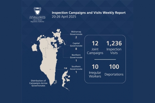 The LMRA renewed its call on all members of the society to support the efforts of government agencies in addressing illegal labour practices, by reporting violations via the electronic form on the authority’s website www.lmra.gov.bh or by calling the authority’s call centre on 17506055 or via the government’s Suggestions and Complaints System (Tawasul).