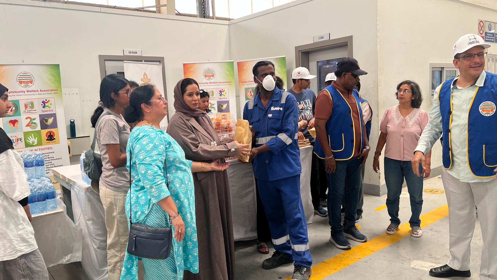 Aligning with the Ministry of Labour’s initiative to ensure a safe working environment during the sweltering three months, ICRF Bahrain distributed water, juice, laban, orange, apple and banana at the worksite of Kontra located in Mina Salman.