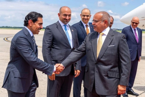 Upon arrival, His Royal Highness the Crown Prince and Prime Minister was received by His Highness Shaikh Isa bin Salman bin Hamad Al Khalifa, the Minister of the Prime Minister’s Court; His Excellency Dr Abdullatif bin Rashid Alzayani, Minister of Foreign Affairs; His Excellency Shaikh Salman bin Khalifa Al Khalifa, Minister of Finance and National Economy; His Excellency Yousif bin Abdulhussain Khalaf, Minister of Legal Affairs and Acting Minister of Labour; and His Excellency Abdulla bin Adel Fakhro, Minister of Industry and Commerce; HE Shaikh Abdulla bin Rashed Al Khalifa, Bahrain's Ambassador to the United States of America, along with several senior officials.