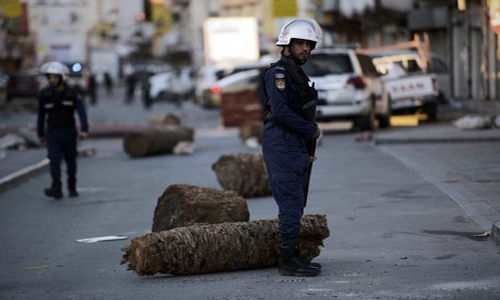 Photo:Bahrain riot police stand guard during clashes with protestors west of the capital Manama on January 4. (AFP)