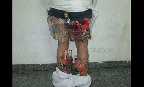 Al Otaibi revealed that a passenger was caught with 14 liquor bottles hidden under his clothes. The General Director explained that the passenger duct-taped the bottles to different parts of his body and covered it with his traditional attire (thobe).