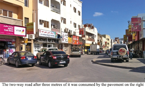 A resident told DT News that “there’s literarily no space for pedestrians to walk now,” adding that “the space between the entrances of shops that are lined up on the sides of the road and the path of cars is not more than half a metre.” “This would definitely put pedestrians, who have a heavy footfall in the area, in great danger, especially children and the elderly,” he commented.