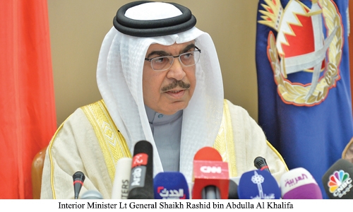 Interior Minister Lt General Shaikh Rashid bin Abdulla Al Khalifa yesterday spoke of the “dangers of Iran’s interference in the internal security” of Bahrain during a meeting with clerics, MPs and newspaper chiefs.