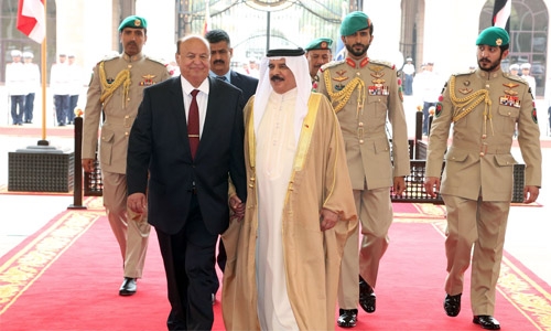 Manama : His Majesty King Hamad bin Isa Al Khalifa received at the Gudaibiya Palace today the Yemeni President Abd-Rabbu Mansour Hadi, who is on a visit to the Kingdom.