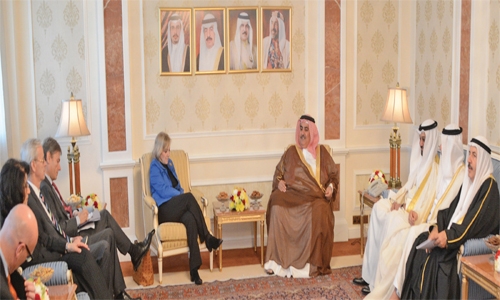 The Minister welcomed the members of the US delegation, currently on a visit to the Kingdom of Bahrain. During the meeting, Shaikh Khalid lauded the recurring reciprocal visits between officials of both countries in order to boost cooperation. “These visits eventually reflect on enhancing the common interests and consolidating the levels of coordination on different issues,” he commented, highlighting the most recent visit of the US Secretary of State John Kerry to the Kingdom.