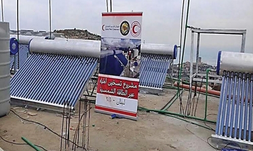 Solar-powered water heating systems and water networks were installed at a refugee camp in Akkar area in the Northern Parts of Lebanon. The US$50,000 project benefits over 106 families of Syrian refugees and is jointly supported by the Bahraini and Qatari Red Crescents.