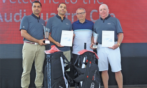 Manama : The ninth and final round of the Audi quattro Cup qualifying series, which took place at the Royal Golf Club in Bahrain, saw Fahad Al Hakam (39 points) take the round win with an excellent stableford score ahead on count back from Ronan Armstrong (39) in second place with Mohammed Al Noaimi (39) in third. The weather conditions and the course set-up favoured the lower handicappers with Bahrain national team members Nasser Yaqoob and Hamad Mubarak a point further behind on 38 points.