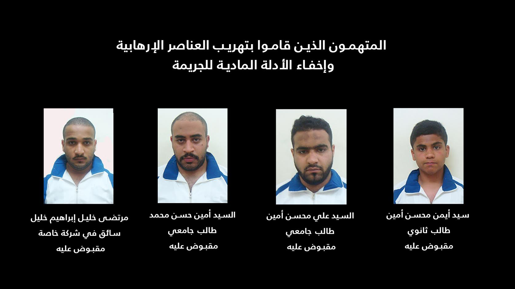 Suspects who sheltered the terrorists and hid evidence, (from left) Murtadha Khalil Ibrahim Khalil (driver at a private company (arrested)), Sayed Ameen Hassan Mohammed (university student (arrested)), Sayed Ali Mohsen Ameen (university student (arrested)) and Sayed Ayman Mohsen Ameen (secondary school student (arrested)).
