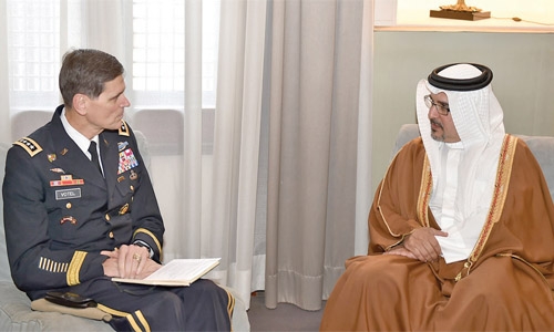 Manama : Deputy King, HRH Prince Salman bin Hamad Al Khalifa yesterday held a meeting with the Commander of the United States Central Command (CENTCOM), General Joseph Votel, at Riffa Palace.