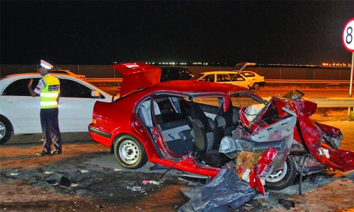 Manama : Seven people, including a child, were injured in a road accident in Zallaq yesterday. The mishap, which involved two cars, occurred after one of them drove on the wrong lane, according to witnesses. All the injured have been admitted to a nearby hospital.