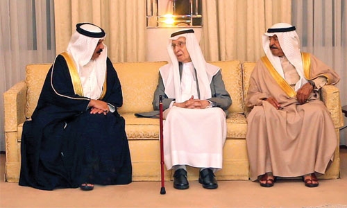Manama : “Abdulaziz Jassim Kanoo is one of Bahrain’s loyal personalities, who had dedicated their lives to serving their nation and society,” said His Majesty King Hamad bin Isa Al Khalifa yesterday during his visit to the Kanoo family along with Prime Minister HRH Prince Khalifa bin Salman Al Khalifa.
