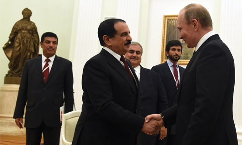 King Hamad said that cooperation between Manama and Moscow has been steadily progressing particularly in the economic, commercial, investment, defence, cultural, tourism and energy fields.