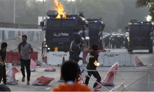 The were charged in connection with hurling firebombs at a patrol vehicle of police officers in Sanad on August 26, 2013.
