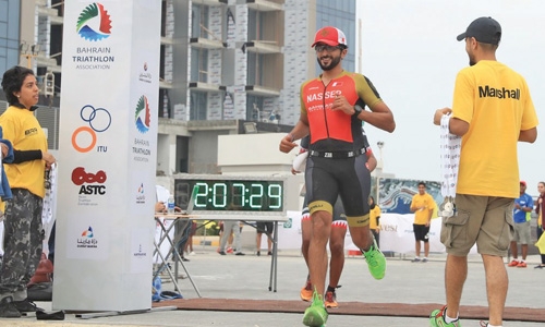 Nasser bin Hamad Al Khalifa, was crowned the winner of the Olympic Triathlon, held yesterday in Durrat Marina.
