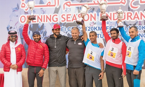 Manama : Rashid Khalid Al Rowaie of Al Zaeem Stable riding Plage El Milora (four 26 minutes 13 seconds) stormed into victory in the main race in the 120km competition, the Opening Race of the Bahrain Royal Equestrian and Equestrian Federation (BREEF) season 2016/17 at the Bahrain Endurance Centre in Sakhir.