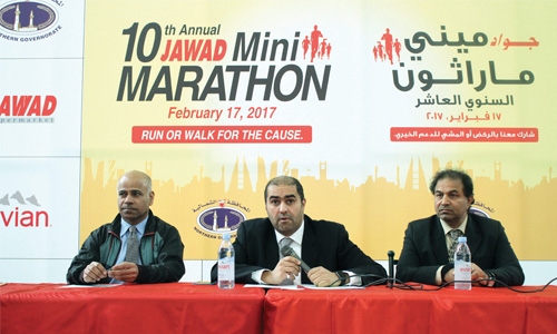 Manama : The 10th Annual Jawad Mini Marathon will take place in Budaiya highway with the tagline ‘Run or Walk for the Cause’ on February 17 under the patronage of Northern Governor Ali Al Shaikh Abdul Hussein Al Asfoor, said the organisers at a press conference yesterday.