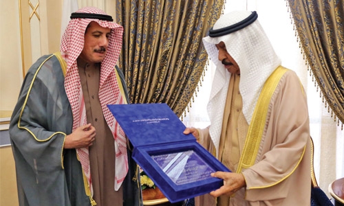 The Premier made the statements while receiving, at the Gudaibiya Palace yesterday, the Kuwaiti Ambassador to Bahrain, Shaikh Azzam Mubarak Al-Sabah, who handed over to him an invitation to attend the celebration to be hosted by the Kuwaiti Embassy marking the 56th Anniversary of Kuwait’s National Day, and the 26th Anniversary of the Liberation Day.