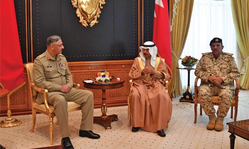 Pakistan’s Chairman of the Joint Chiefs of Staff Committee said HRH the Prime Minister’s wisdom, statesmanship and experience in dealing with various issues are widely appreciated in his country, adding that Pakistan’s vision is based on the belief that the security of Bahrain and GCC is of utmost importance.