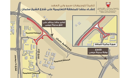 The project aims to increase the number of entrances to the educational area to six. It provides an additional alternative for traffic exiting the educational area and heading for Manama by avoiding the Isa Town Gate signal and instead heading direct for Isa Town Underpass.