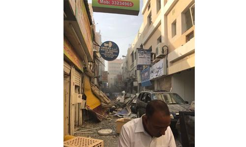 Manama : A gas cylinder leakage in a restaurant in downtown Manama ignited an inferno yesterday, causing an explosion leading to the collapse of the restaurant building. Several shops and cars parked on the premises were also damaged in the blast. No casualties were reported.