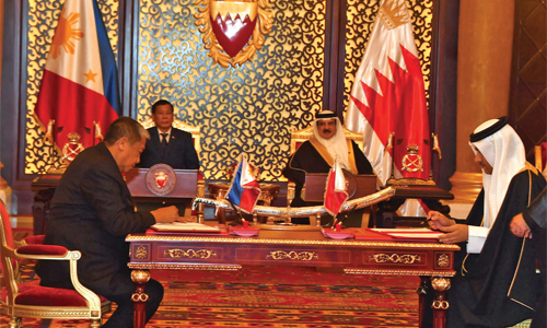 A number of agreements were signed during the meeting. Foreign Affairs Minister Shaikh Khalid bin Ahmed bin Mohammed Al Khalifa represented Bahrain in the signing ceremony and Philippine Acting Foreign Secretary Enrique Manalo represented the Philippine side. The MoUs signed during the meeting were: