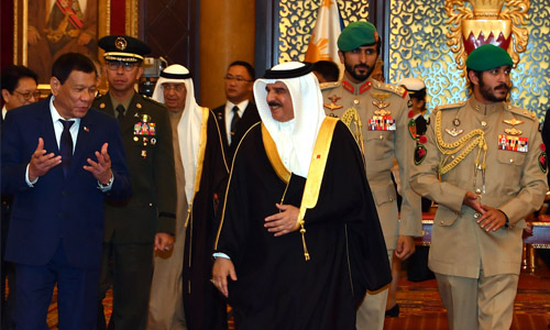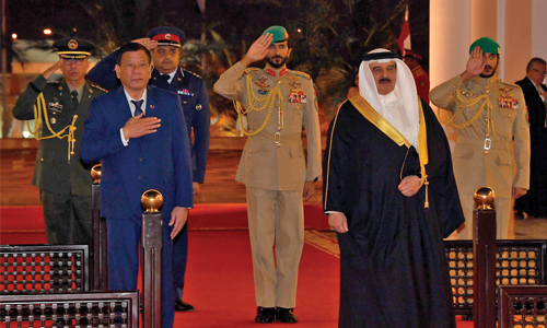 Manama : His Majesty King Hamad bin Isa Al Khalifa received Philippines President Rodrigo Roa Duterte and the accompanying delegation at Sakhir Palace yesterday.