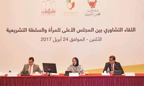 The meeting held at the Gulf Convention Centre in Gulf Hotel was attended by SCW Undersecretary Dr. Hala Al Ansari, House of Representatives First Deputy Speaker Ali Al Aradi, Shura Council First Deputy Speaker Jamal Fakhro and a number of MPs, Shura Council members and SCW officials.