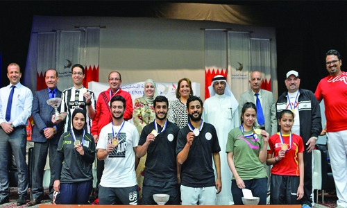 The event comprised three categories in total – academic staff boys and girls. Kaltham Elyasi proved the strongest among the girls participants to capture the trophy, beating national teammate Hessa Al Zayani 3-0 (11-6, 11-4, 11-5) in the concluding match of the five-player round robin competition.In the academics championship, Dr. Islam of the Gulf University was crowned champion after a 3-1 (14-12, 11-9, 8-11, 11-2) win over Gulf University president Dr Muhannad Al Mashhadani in the final.