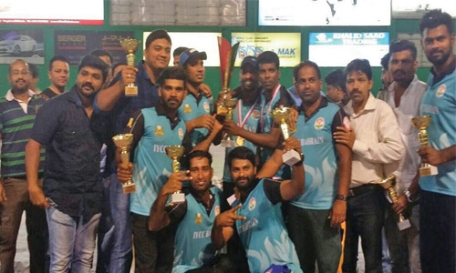 Other scores (Quarter finals): Manglore Boys 38/4 in 5.2 overs bt Smashers 37/5 in 6 overs by 2 wickets. Central Café 29/1 in 5.1 overs bt Jai Karnataka 25 all out in 5.3 overs by 5 wickets. Target CC 30/0 in 4.1 overs bt Spartans 29/5 in 6 overs) by 6 wickets. Chak de India 36/1 in 4.1 overs bt Riffa CC 34/4 in 6 overs by 5 wickets.