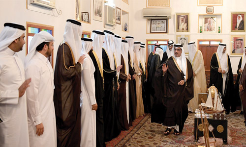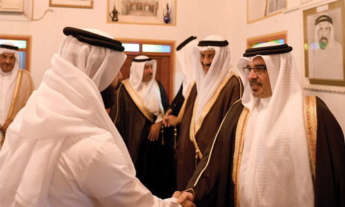 The Crown Prince was visiting the Majlises of Al Musallam family, Al Mahmood family and Minister for Shura Council and House of Representatives Affairs, Ghanim Al Buainain. Shaikh Isa bin Salman Al Khalifa accompanied Prince Salman during the visits.