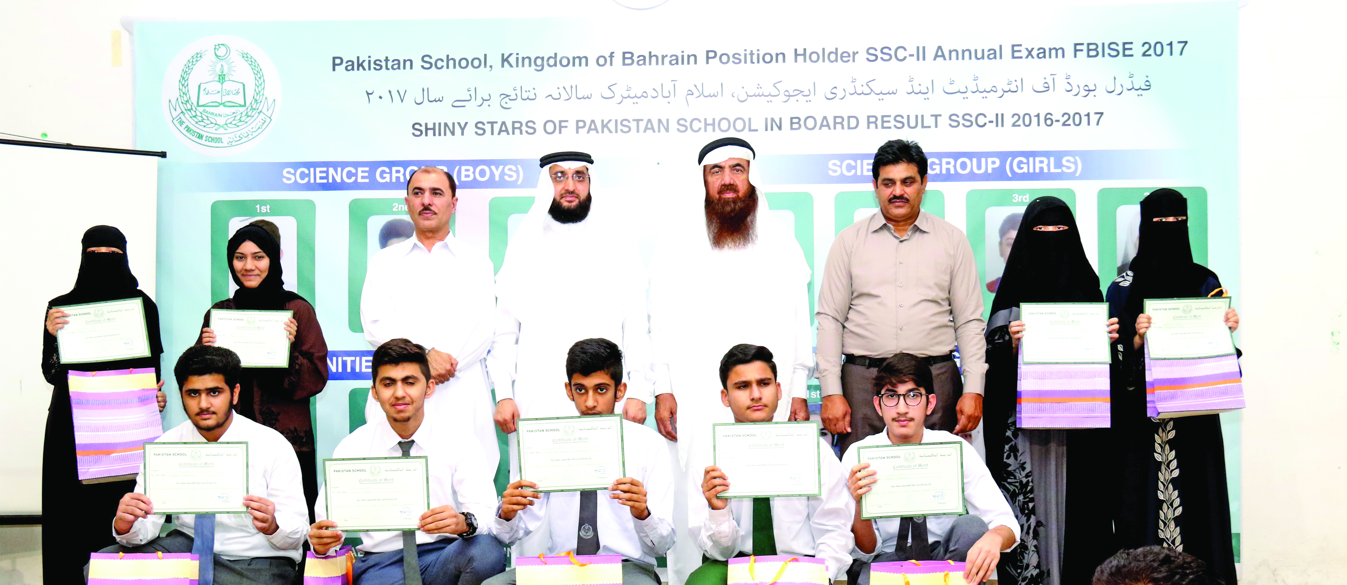 Manama : Students of Pakistan School came out with flying colours in the Federal Board of Intermediate and Secondary Education, Islamabad’s Secondary School Certificate (SSC) part II Examinations of 2017.