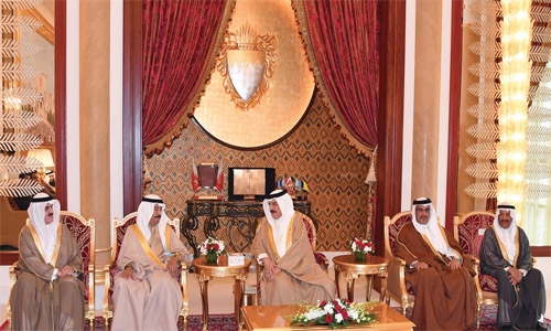 Manama : His Majesty King Hamad bin Isa Al Khalifa has hailed executive-legislative cooperation which benefited the nation and its citizens. He made the statement – in the presence of His Royal Highness Prime Minister Prince Khalifa bin Salman Al Khalifa and His Royal Highness Prince Salman bin Hamad Al Khalifa, Crown Prince, Deputy Supreme Commander and First Deputy Premier – as he received Speaker Ahmed bin Ibrahim Al Mulla and Shura Council Chairman Ali bin Saleh Al Saleh. Deputy Speakers, Shura Council vice chairpersons, heads of committees were also present at the Sakhir Palace. They all greeted HM the King, marking the endorsement of the Unified Family Law. HM the King welcomed them all and expressed thanks and appreciation to HRH the Premier and HRH the Crown Prince for the executive-legislative cooperation.HM commended the Speaker and Shura Council chairman, MPs and Shura members for their dedicated role in passing the crucial law. HM hailed the achievements of the current legislative session, citing the endorsement of the laws on state budget, property development, penalties and alternative measures.