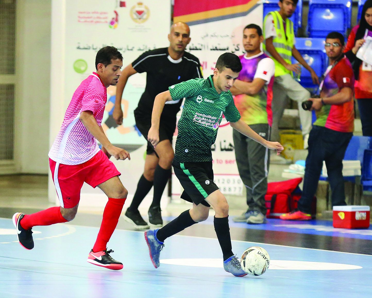 Manama : Sanad Youth Centre defeated Zallaq Youth Centre in a penalty shootout after the two teams played out a 1-1 draw on the fourth day of the Round of 16 knockout matches in the Fifth Khalid bin Hamad Futsal League for Youth Centres, People with Disabilities and Girls (Khalid 5) at the Khalifa Sports City Hall in Isa Town.