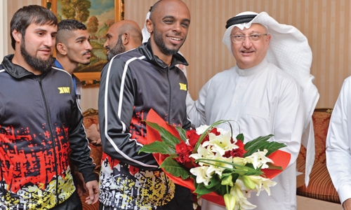 Manama : Bahrain’s Mixed Martial Arts team which made outstanding impact at the First African Open Amateur Mixed Martial Arts Championship concluded in Johannesburg in South Africa was received on return by Supreme Council for Youth and Sports assistant general secretary and Bahrain Olympic Committee general secretary Abdulrahman Askar, Bahrain Mixed Martial Arts Federation president Khalid Al Khayyat as well as other top sports officials.