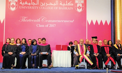 Manama : The University College of Bahrain (UCB) held its 13th Commencement ceremony for its 2017 graduates yesterday at the Ritz Carlton Bahrain Hotel.
