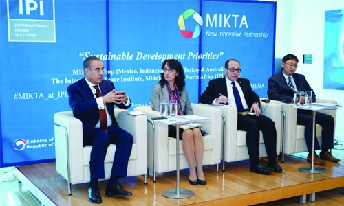 Shaikh Abdulla attended the The International Peace Institute, Middle East & North Africa (IPI, MENA) seminar that hosted officials from Indonesia, South Korea and Turkey to address the Sustainable Development Priorities of MIKTA (Mexico, Indonesia, South Korea, Turkey, Australia), an innovative partnership between the United Mexican States, the Republic of Indonesia, the Republic of Korea, the Republic of Turkey and the Commonwealth of Australia.