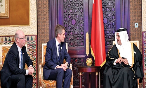 HRH the Crown Prince was receiving the United Kingdom (UK)’s Secretary of State for Defence, Gavin Williamson MP, and the UK’s Minister of State for the Middle East, the Rt Hon Alistair Burt MP, on the sidelines of the 2017 Manama Dialogue.