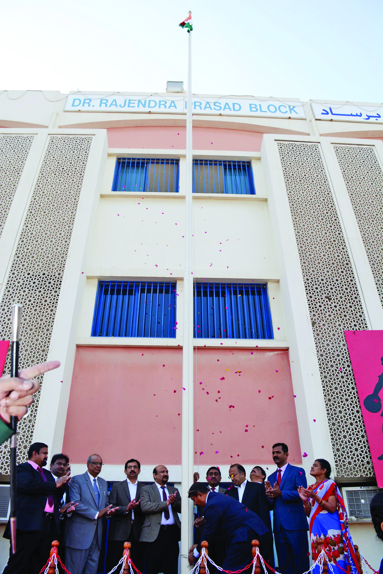 The celebrations commenced with ISB Chairman Prince S Natarajan hoisting the Indian National Flag in the presence of ISB Secretary Saji Antony, EC Members Jayafar Maidani, Mohammad Khursheed Alam, Premalatha NS, Binu Mannil Varughese, Rajesh MN, Ajaya Krishnan V, Principal VR Palani Swamy, Riffa Campus Principal Sudhir Krishnan, Staff Representative Johnson K Devassy and Vice Principals.