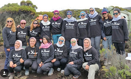 Fajer Talal Mufeez, Fatima Ali Al Mahmood, Noor Talal Mufeez, Nada Hameed, Faten Ibrahim Matar, Nawara Bahzad, Rasha Yusuf, Alia Al Qahtani, Noor Al Saad, Mona Zainal and Nadya Eqab from Bahrain were joined by two from Kuwait, and one from Saudi Arabia, the UAE and Iraq to form the largest Gulf women expedition.