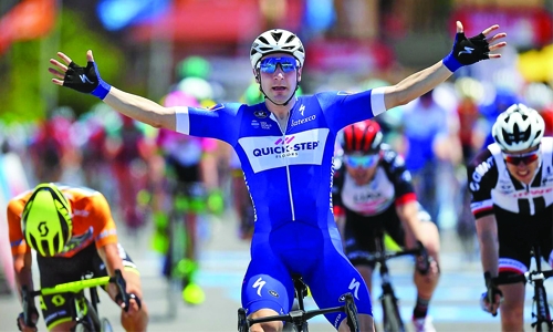 Dubai : Elia Viviani (Quick-Step Floors) collected the best birthday present he could wish for with victory on stage 2 of the Dubai Tour. The Italian, who turned 29 yesterday, edged out stage 1 winner Dylan Groenewegen (LottoNL-Jumbo) and Riccardo Minali (Astana) to take the spoils.