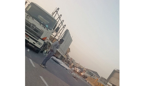 Manama : A large shipment of glass fell off a truck near Nuwaidrat in the Capital Governorate during the evening rush hour yesterday, hindering traffic flow for at least one hour.