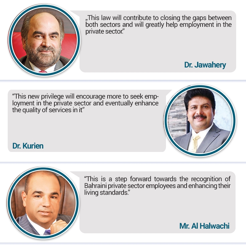 Heads of leading private sector establishments in Bahrain have welcomed the issuance of Law 17 of 2018 by His Majesty King Hamad bin Isa Al Khalifa on Monday, citing multiple advantages the new law would offer different fields of the private sector. Allowing more benefits to Bahraini employees in the private sector, the law amends Article 36 of the Social Insurance Law, promulgated by Decree Law 24 of 1976. It permits the Bahraini private sector employees to request an addition of a default service period for the period of their insurance contribution not exceeding five years, similarly to their counterparts working in the public sector. The amendment also stipulated that the period of service computed after retirement and after termination of service mustn’t exceed the limit of the qualifying period for the maximum pension. This grants early-retirement options to private sector employees by a maximum of five years, a privilege given to public sector employees. They are now enabled to purchase up to five years of service credit at retirement.